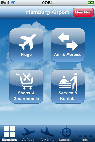 Diese Projekt habe ich als Projektleiter geleitet und mit entwickelt. Es ging darum, in einer App für den Hamburger Flughafen dem Passagier und Besucher die notwendigen Informationen für den Aufenthalt zur Verfügung zu stellen.